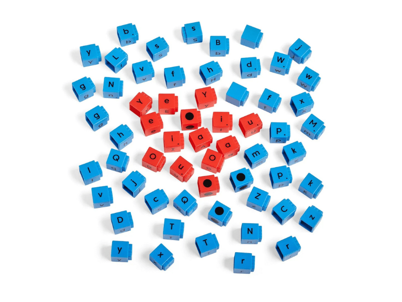 - 60 tiges à code couleur : Bleues – Consonnes, Rouges – Voyelles