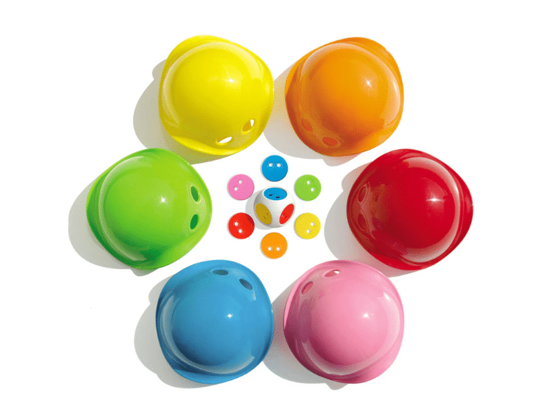 Les pièces sont polyvalentes : elles servent de cibles, gobelets de score, bols de tri ou plateaux modulables, et peuvent être combinées avec d’autres jouets MOLUK pour des constructions ou des jeux collectifs.