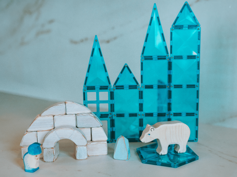 Ajoutez l’Ensemble de départ Transparent 34 morceaux pour augmenter les possibilités de création! Les figurines polaires de Papo et de Holztiger sont parfaites pour ce Coffret!