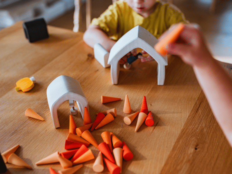 Grapat est une entreprise espagnole, située en Catalogne, qui a comme principal objectif de produire des jouets sans mode d’emploi qui sont libres et polyvalents. Leur conception invite et provoque d’elle-même la création de mondes fantastiques ou réalistes. Chaque pièce est unique; les artisans fabriquent chacune d’elles à la main en utilisant des colorants naturels qui laissent voir les veines du bois ainsi que des cires et huiles aux couleurs vives qui brillent légèrement. Le hêtre et le bouleau utilisés pour créer les jouets proviennent de forêts durables. Les sacs en tissu de certains produits proviennent de grandes entreprises qui jettent du matériel lorsqu’ils présentent un petit défaut. Comme Grapat produit les sacs à la main, ils peuvent en tirer parti en supprimant ces défauts et en leur donnant une seconde vie. Les tissus varient et ne correspondent pas aux photos des produits. Depuis 2019, l’entreprise a éliminé à 100 % l’utilisation de plastique dans leurs emballages.
