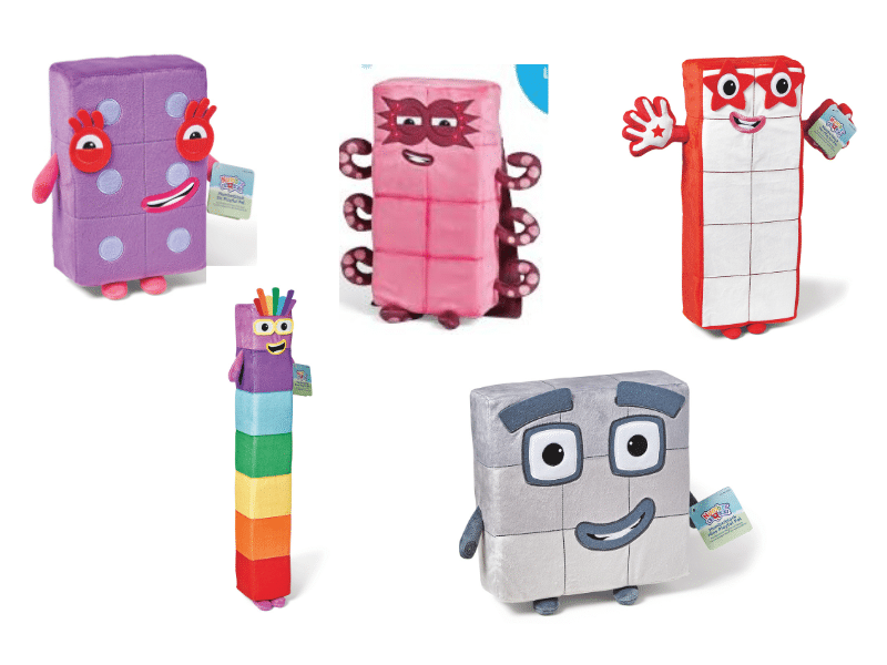 Découvrez les peluches Numberblocks de 6 à 10! Les peluches Numberblocks sont proportionnelles, donc la peluche 1 entre 2 fois dans la peluche 2, 3 fois dans la peluche 3 et ainsi de suite!