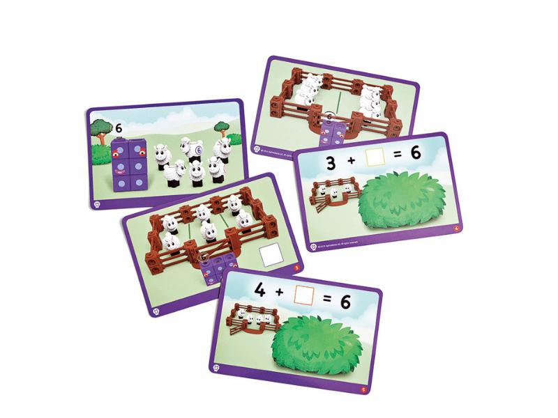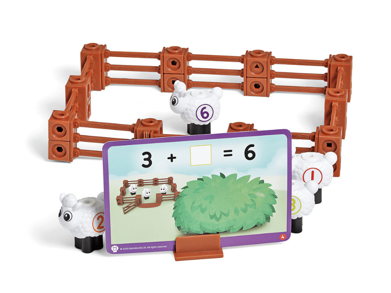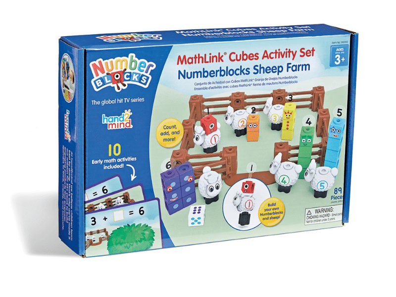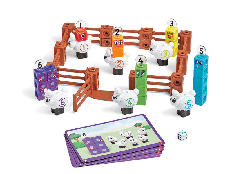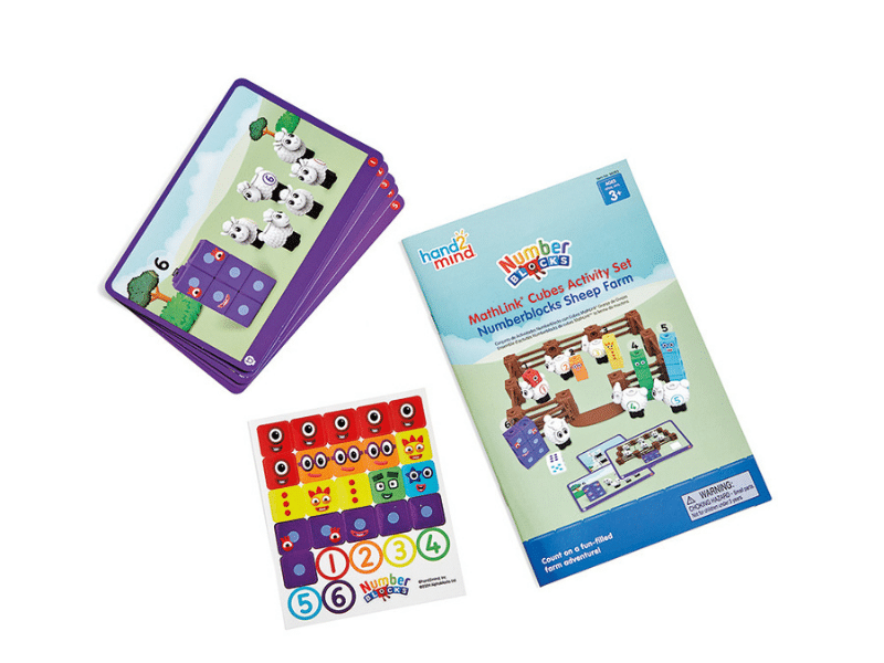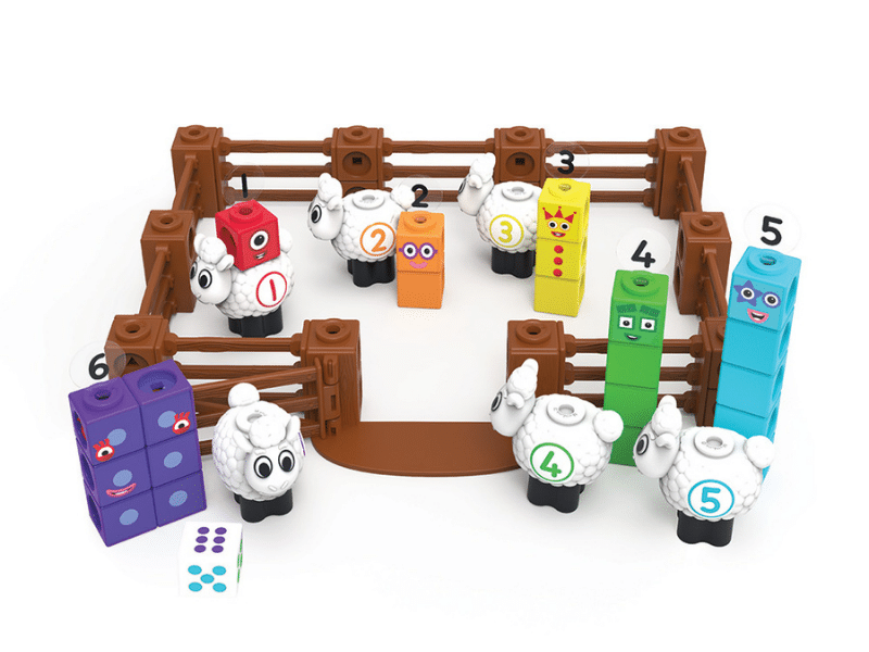 Grâce aux MathLink Cubes, les enfants peuvent construire et compter les moutons, créer leur propre ferme et manipuler les personnages Numberblocks Un à Six, tout en développant leurs compétences en mathématiques de manière ludique et interactive.