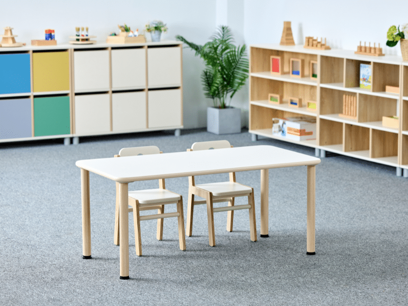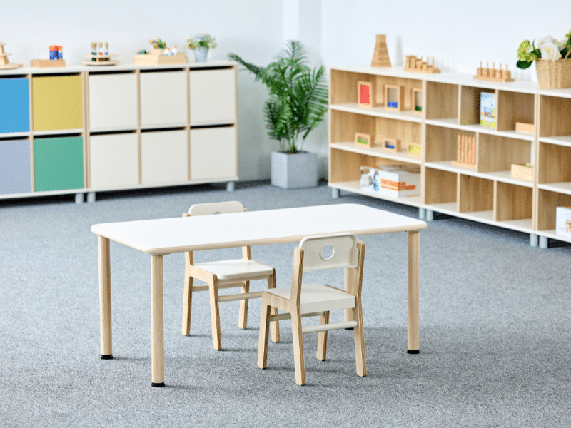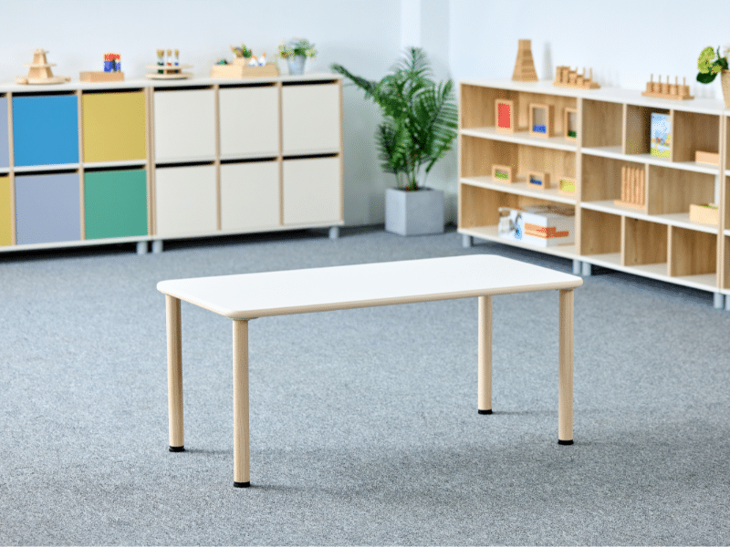 Conçu pour les environnements éducatifs, ce plateau rectangulaire 120 x 60 cm est parfait pour les activités des enfants en garderie ou à l’école. Son design simple et robuste s’adapte à tous les environnements, pour encourager le travail en groupe, le bricolage et le jeu libre.