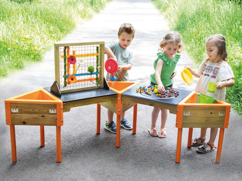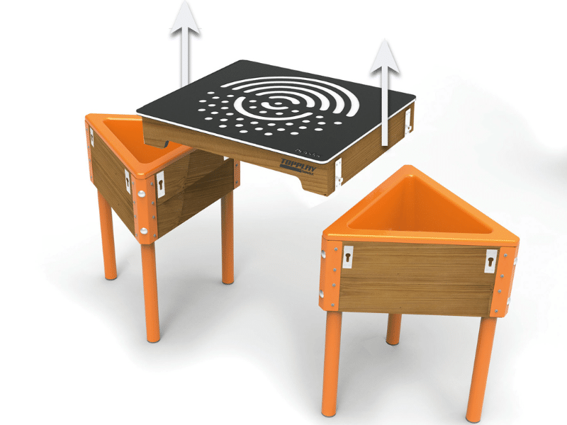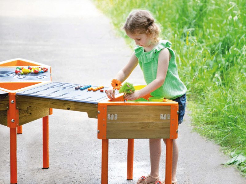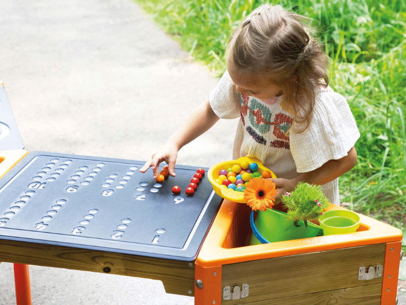 La table d’activités extérieure de Beleduc est idéale pour compléter la table d’activités extérieure 5 morceaux ou pour créer votre propre configuration de tables d’activités. Les différents plateaux de jeu (vendus séparément) peuvent être insérés entre deux tables afin de former un espace de jeu modulable et évolutif.