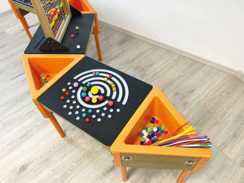 Cette table permet de composer facilement une installation personnalisée, adaptée aux besoins du groupe et aux différentes activités proposées.